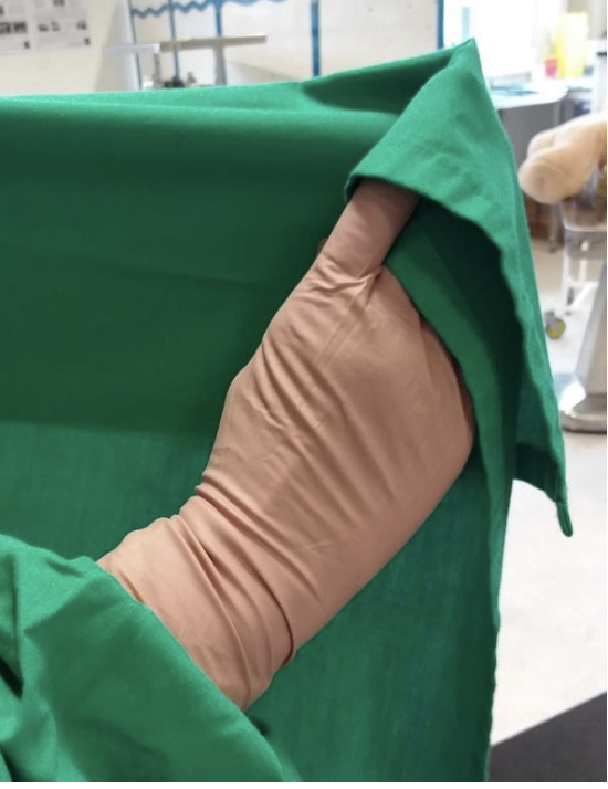 over your hand (so that the drape
