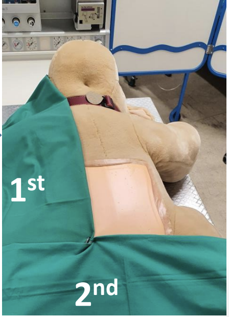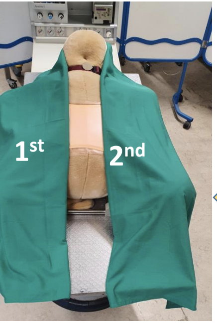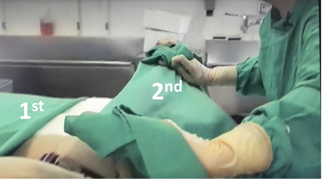 Place the 1st drape longitudinally down the length of the animal, this is usually the side closest to you