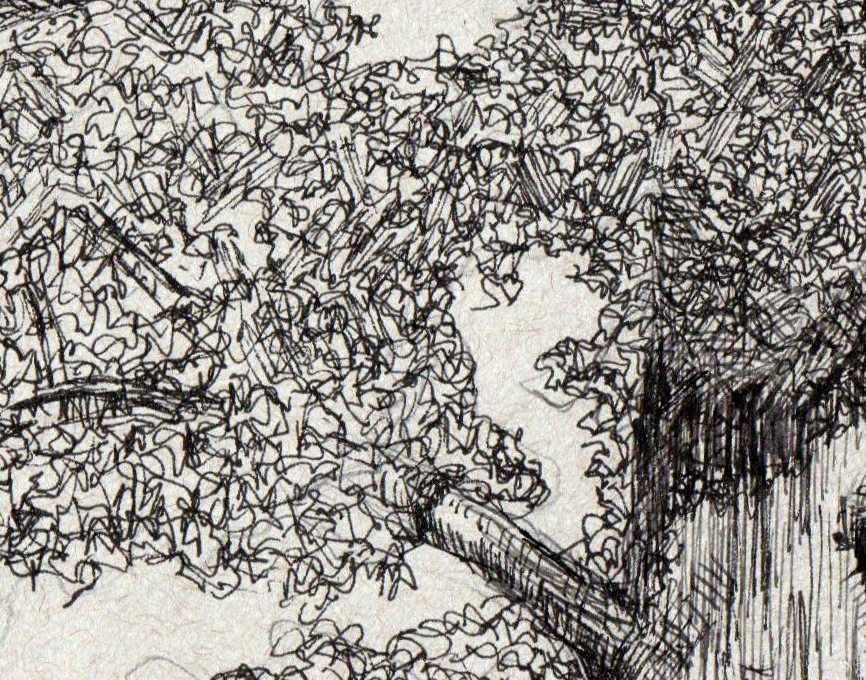 Shading by means of a network of random, multidirectional lines.