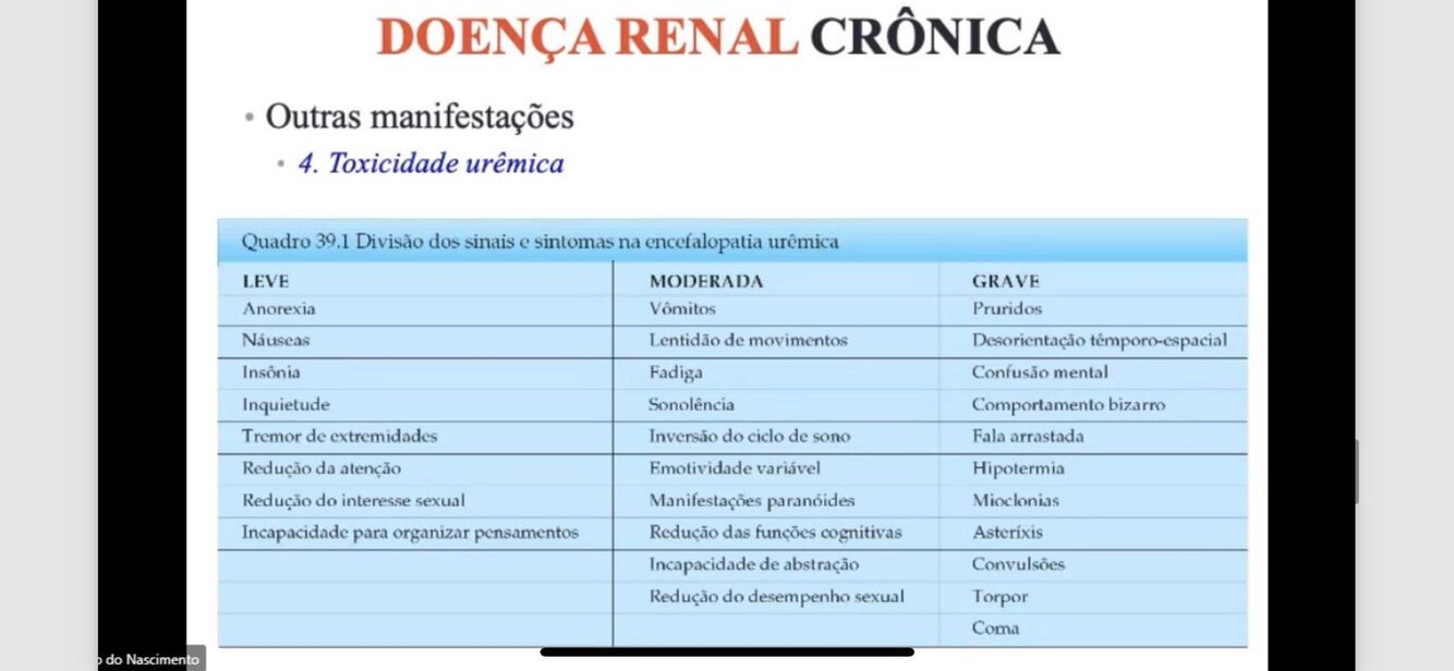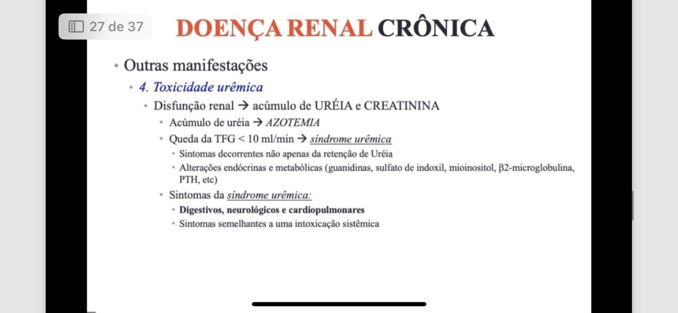 TOXICIDADE UREMICA CAUSAS OU SINTOMAS
