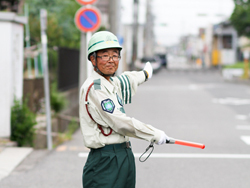 A flagperson allowing the traffic.