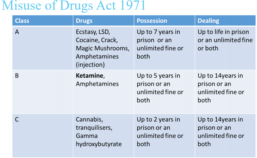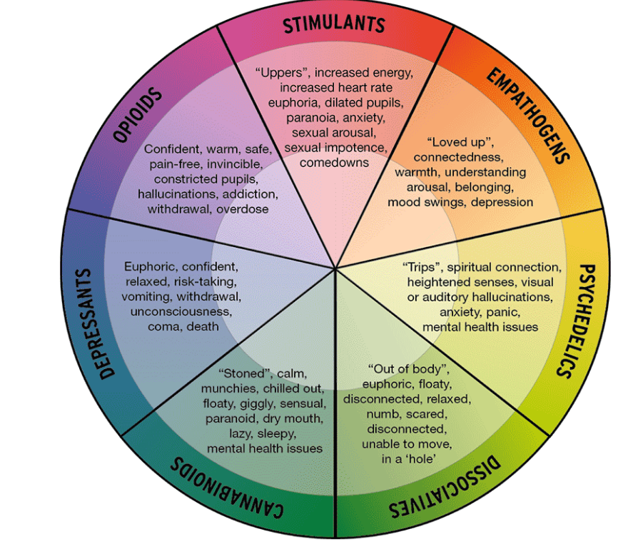 Examples: ecstasy, LSD, crack, cocaine, magic mushrooms, amphetamines (injections)