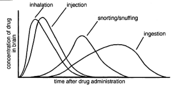 What is the fastest method of drug delivery that affects drug concentration in the brain?