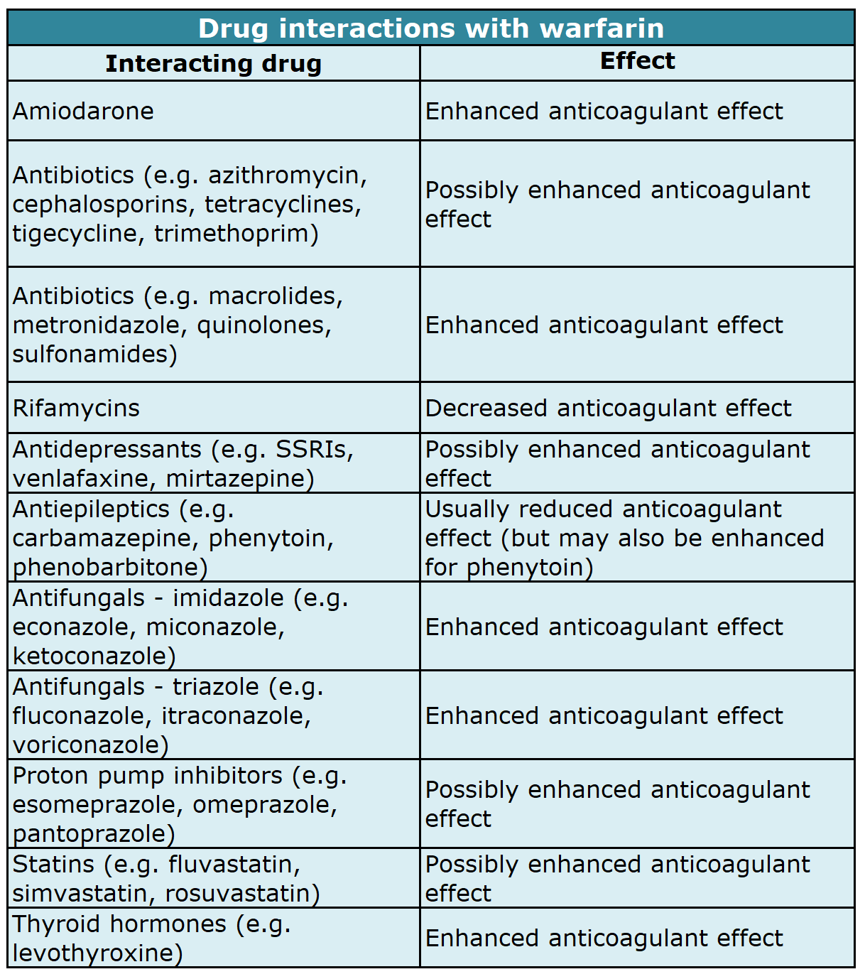 St John’s wort decreases the anticoagulant effect of Warfarin. Manufacturer advises avoid.
