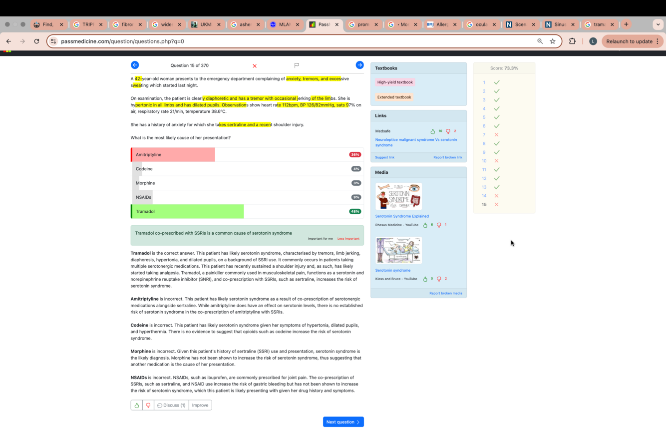HEALTHPATHWAYS SAYS : Can be safely used in combination with selective serotonin reuptake inhibitors (SSRIs) and serotonin and norepinephrine reuptake inhibitors (SNRIs), but still counsel about the symptoms of serotonin toxicity (e.g. agitation, muscle twitching or rigidity, sweating, diarrhoea) however this is exceedingly rare.