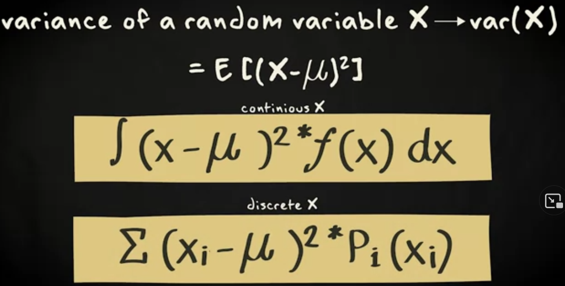 The variance of a random variable X is defined as the expected value of the squared deviation of X from its mean m.