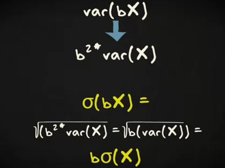 But when you multiply it with a random variable b, its variance becomes the original variance times b squared.