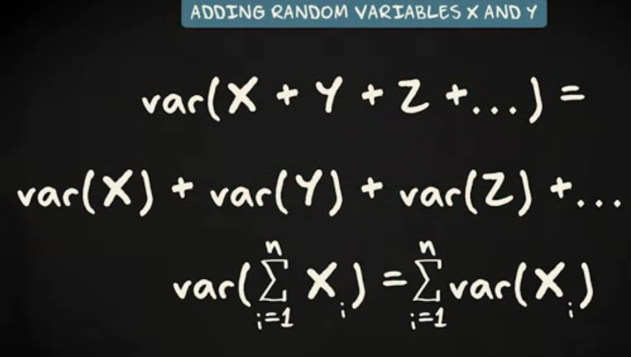 The resulting sum of random variables is always smaller than the sum of the standard deviations for the separate random variables.