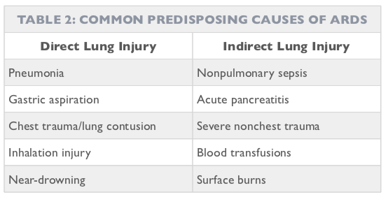 Identification of an underlying cause or inciting event is important in differentiating ARDS from other lung diseases or syndromes that may be misidentified as ARDS