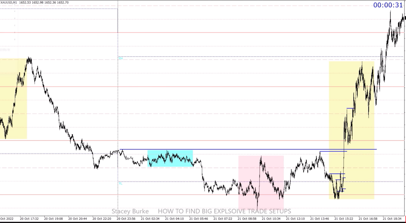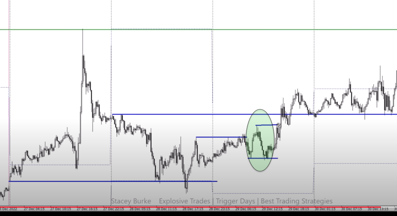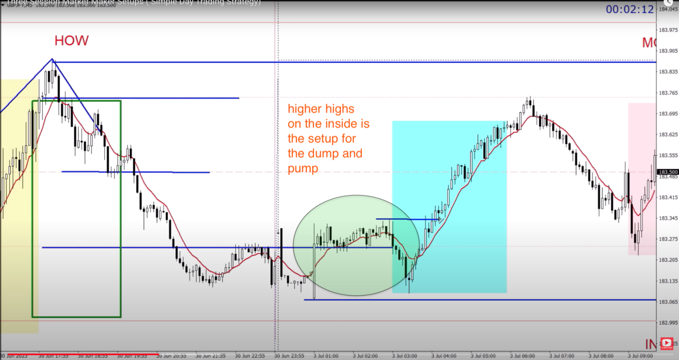 Higher highs on the inside, prior to a session are the setup for a DnP.
