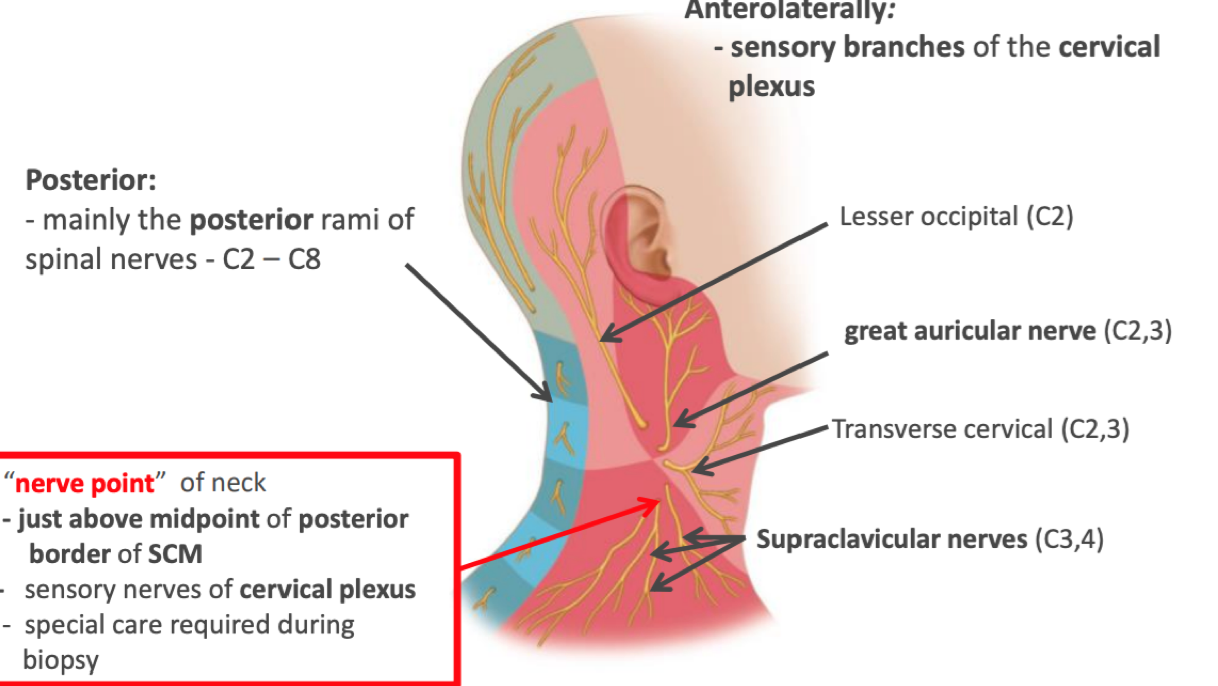 -just above the midpoint of the posterior border of the SCM (sternocleidomastoid muscle)
