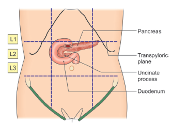 Location of the duodenum