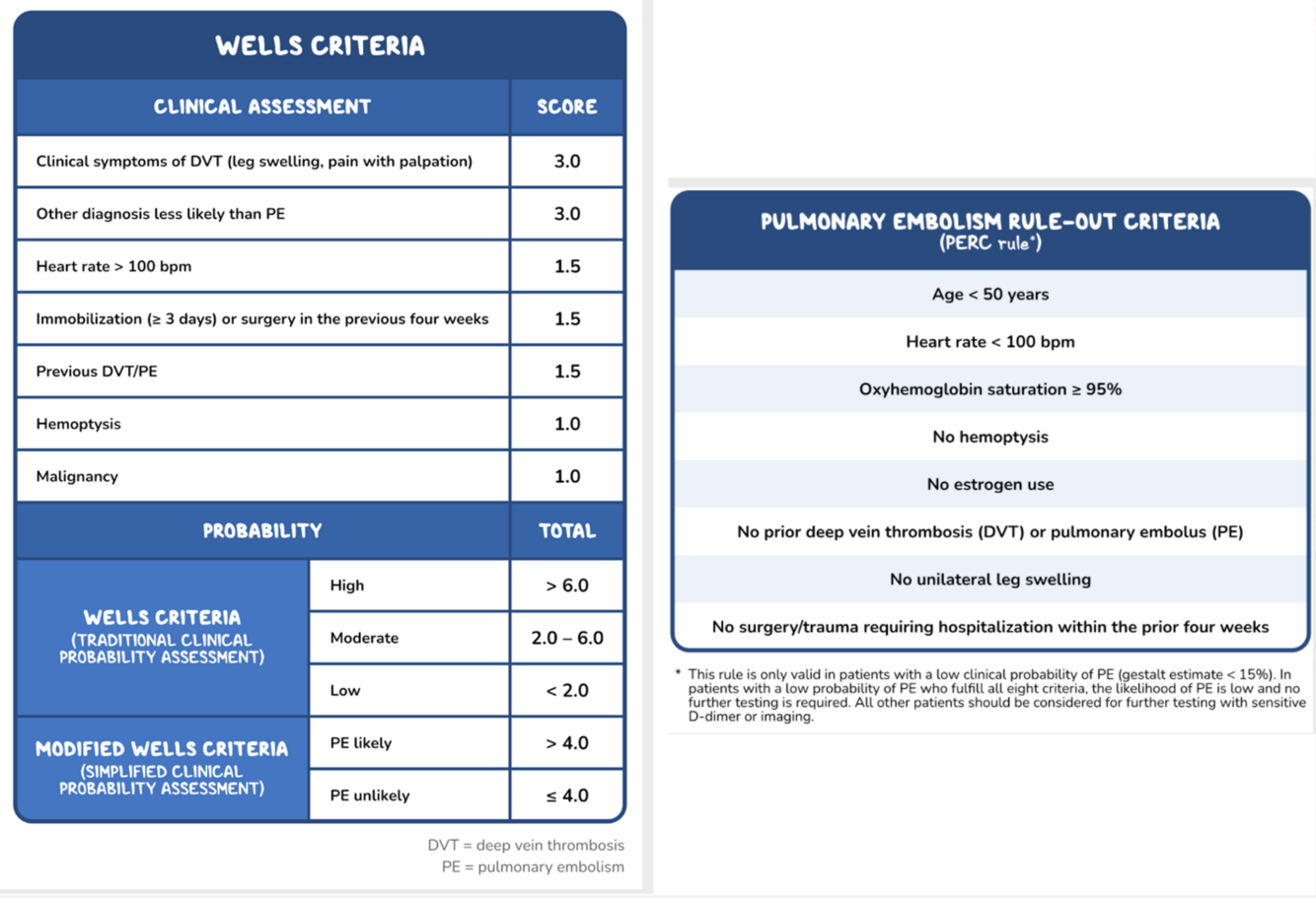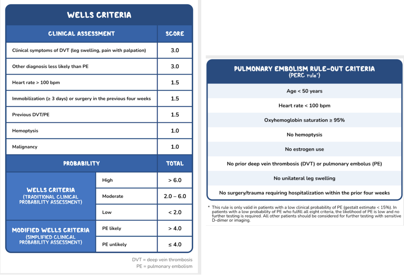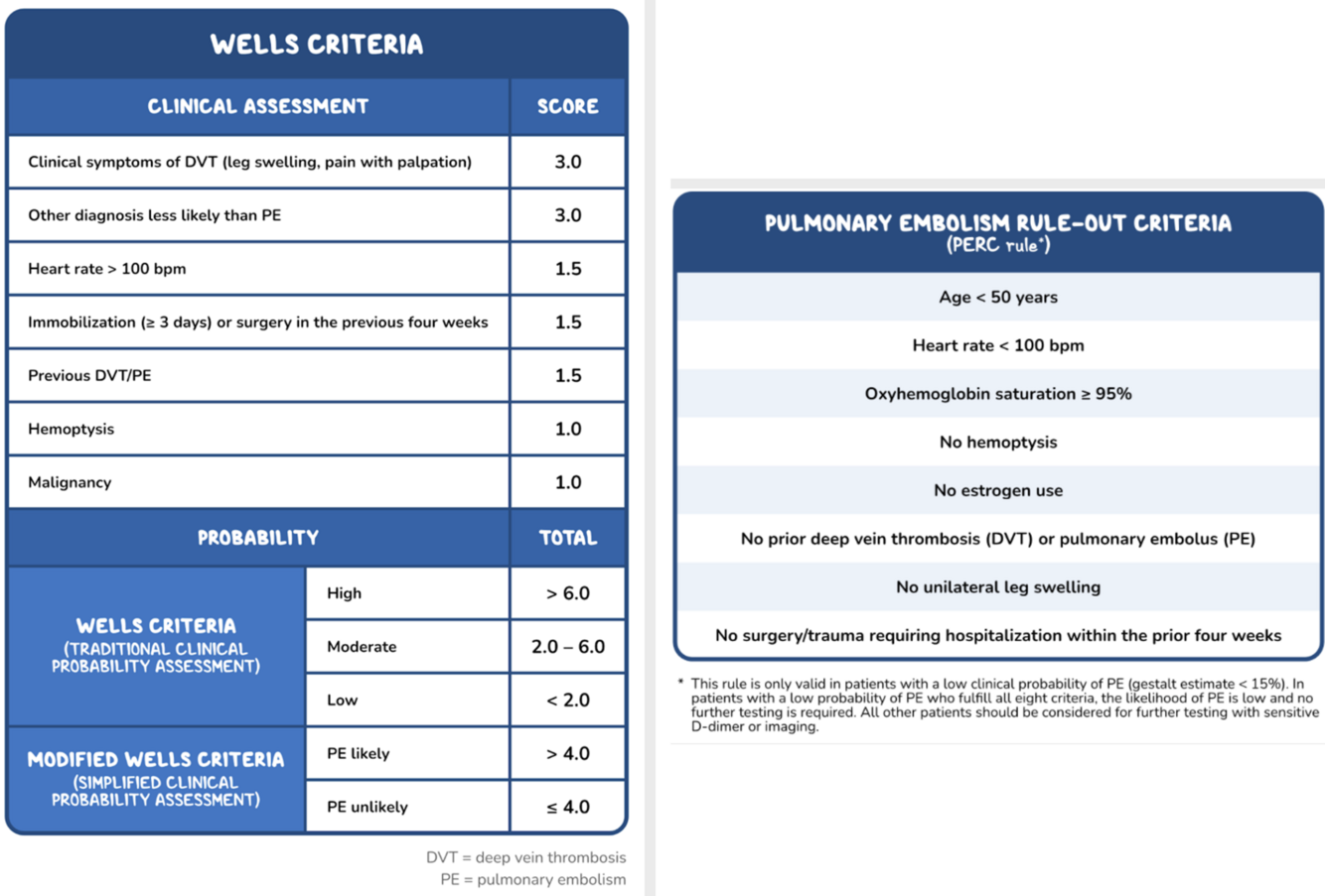 A CT scan of the chest is typically recommended for patients with DVT who have pulmonary symptoms (eg, chest pain, shortness of breath, hemoptysis). Treatment of PE is often the same as for DVT.