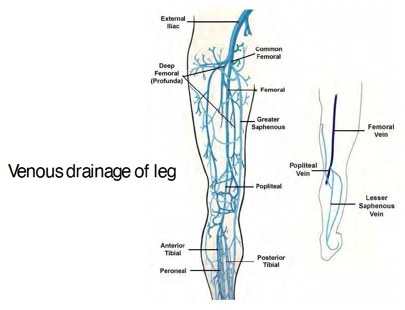 What is the structure of normal venous drainage in the leg?