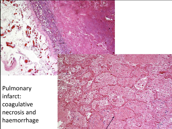 How does a pulmonary infarct present histologically?