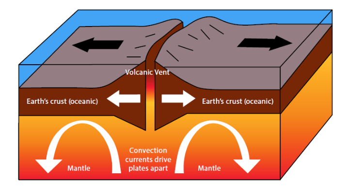 Describe the effects, structures created, and volcanic activity in plate divergence