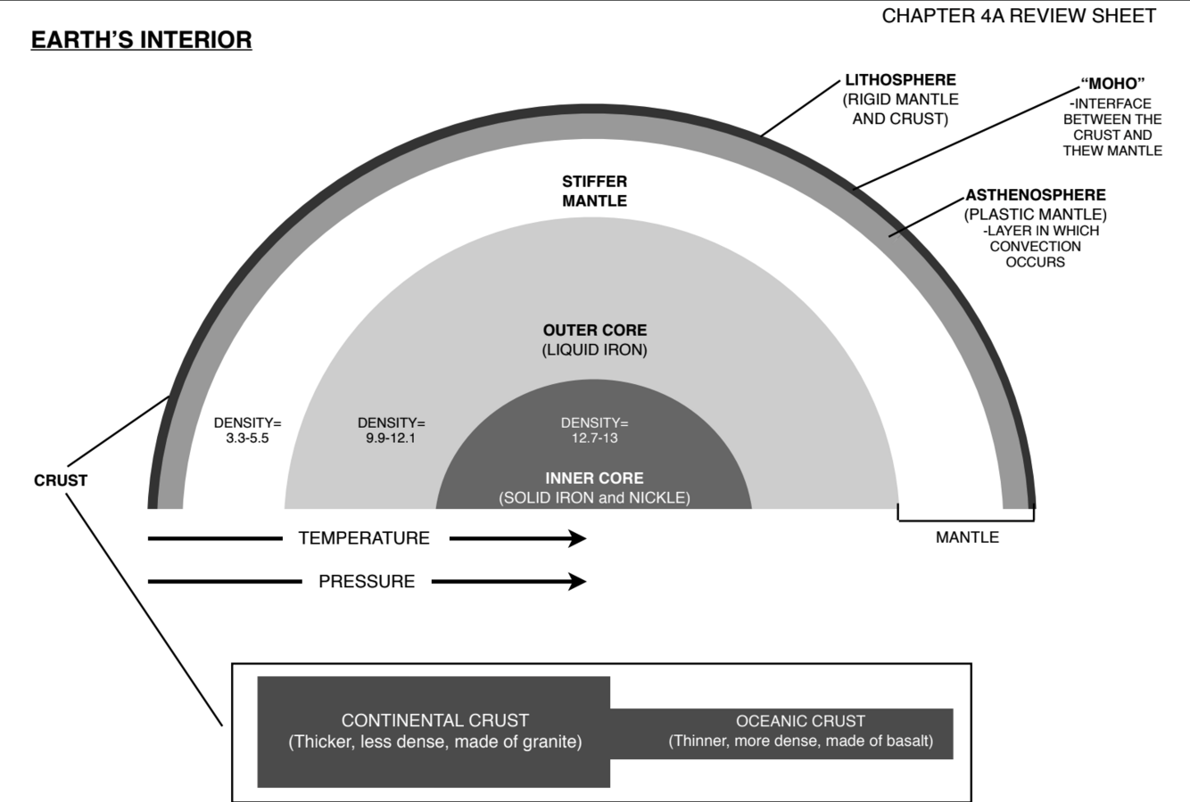 *Our understanding of the earth’s interior is based entirely on the study of ______ _______. Be sure to understand and know how to use page 10 of the ESRTs, the inferred properties of the earth’s interior.