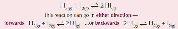 After a while the forwards reaction will be going at exactly the same rate as the backwards reaction, so the amounts of reactants and products won’t be changing anymore - it seems like nothing’s happening.