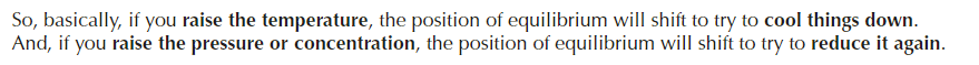 Describe how the position of the equilibrium will change when ther is a change in temperature, pressure or concerntration.