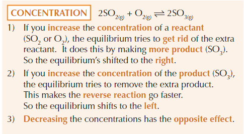 If you change the concerntration, pressure or temperature of a reversible reaction you tend to alter the position of equilibrium.