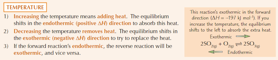 What are the 3 rules invoved in temperature in Le Chateliers principle?
