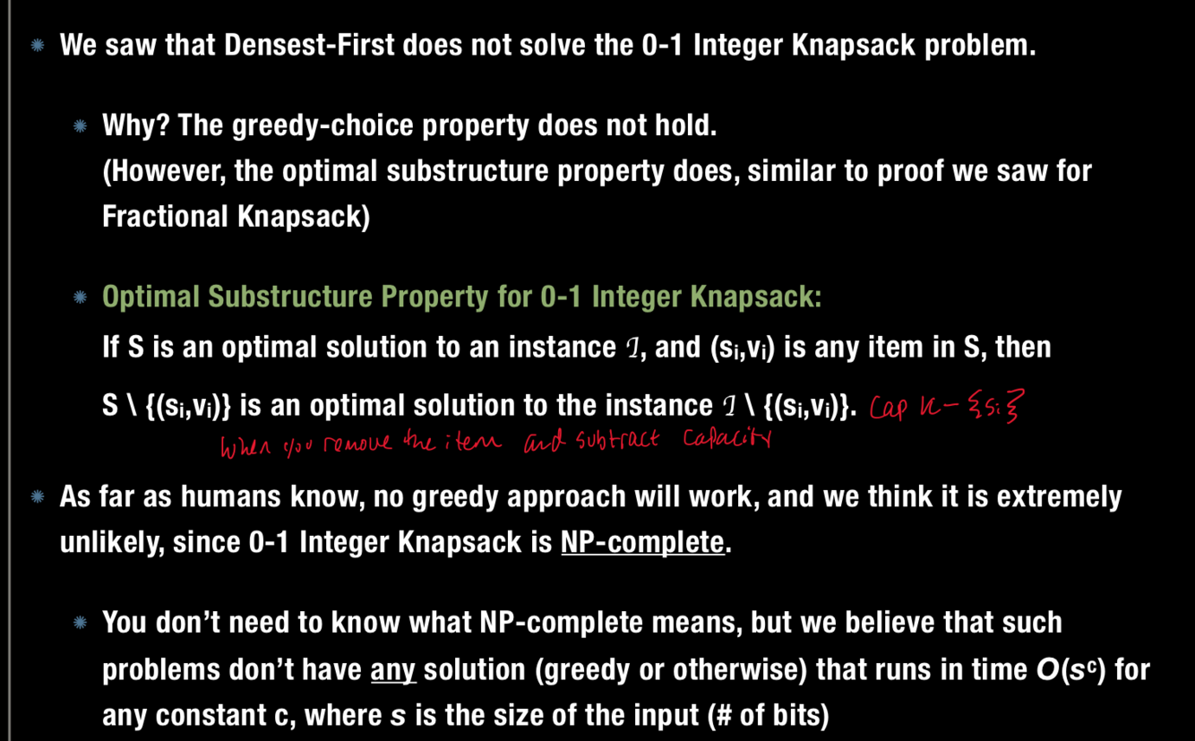 Why doesn’t densest first solve the 0-1 integer knapsack problem?