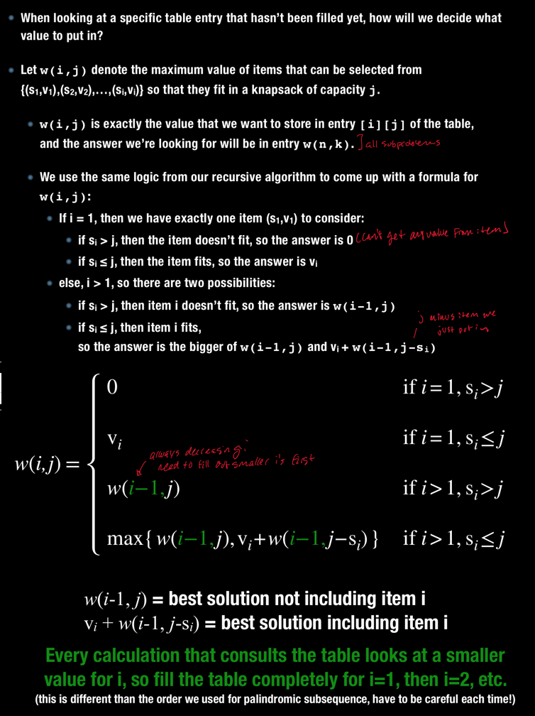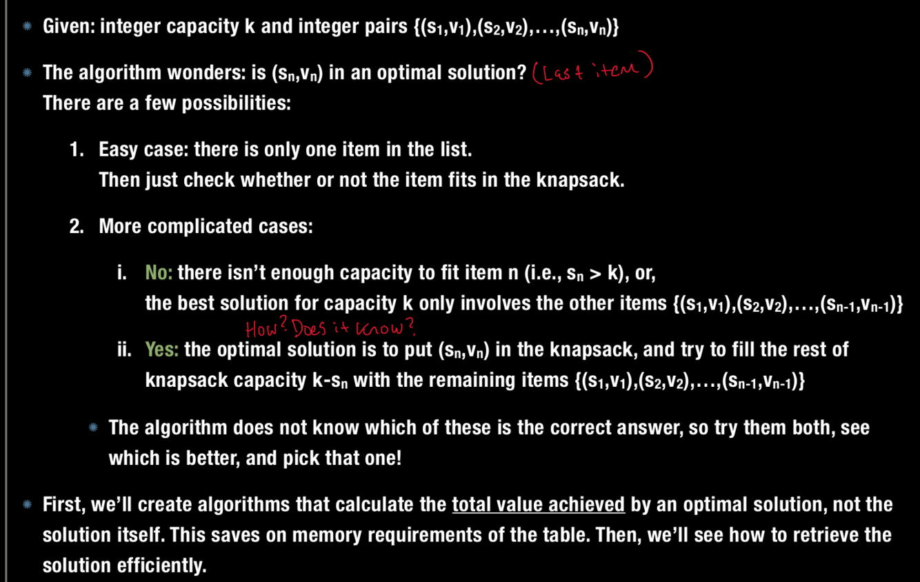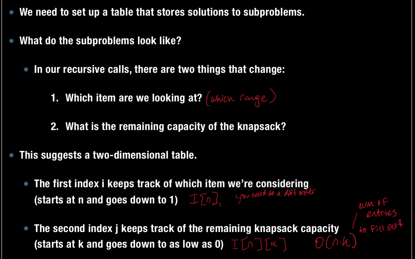 What is the approach for the dynamic programing 0-1 knapsack problem?