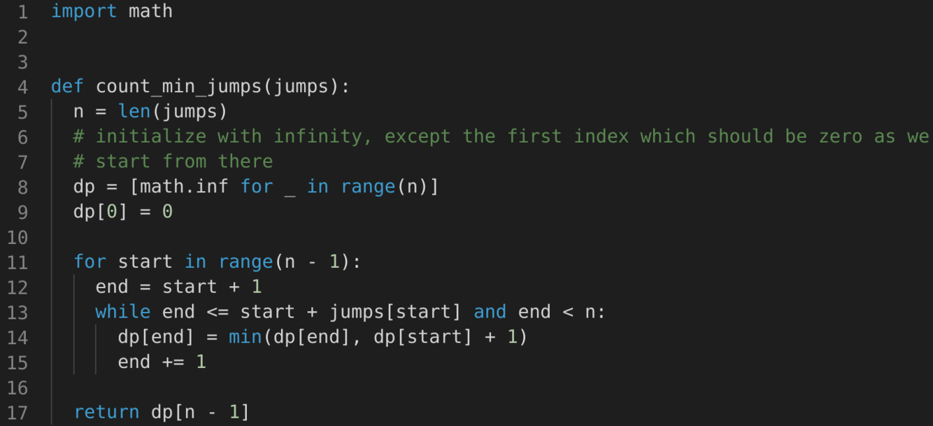 Minimum jumps to reach the end