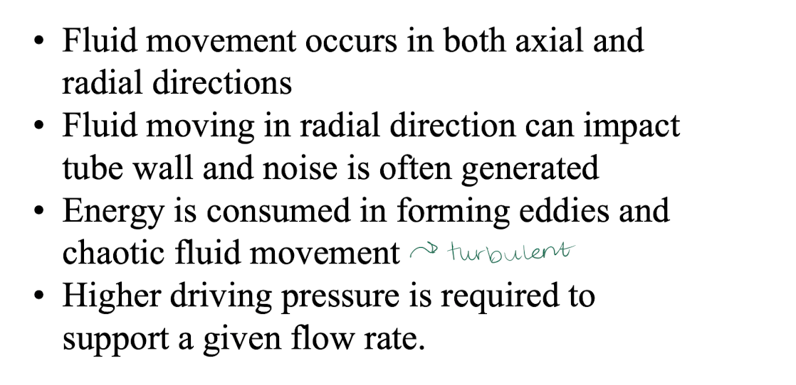 what is turbulent flow? what direction does it move? pressure required?