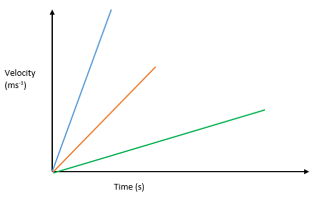 Acceleration is the rate of change of velocity or the change in velocity per second.