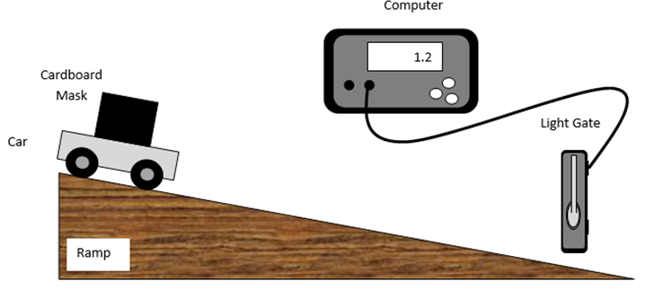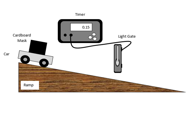 • As the car rolls down the ramp, start the stop watch when it reaches the first light gate and when it reaches the second light gate stop the stop watch.