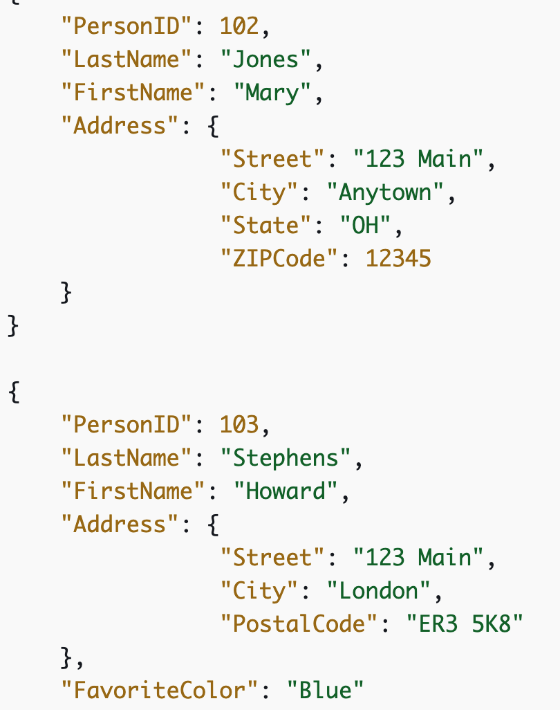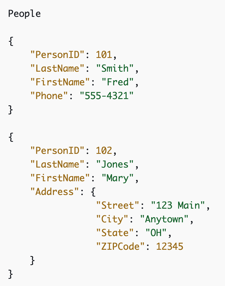 Some of the items have a nested attribute (Address). DynamoDB supports nested attributes up to 32 levels deep.