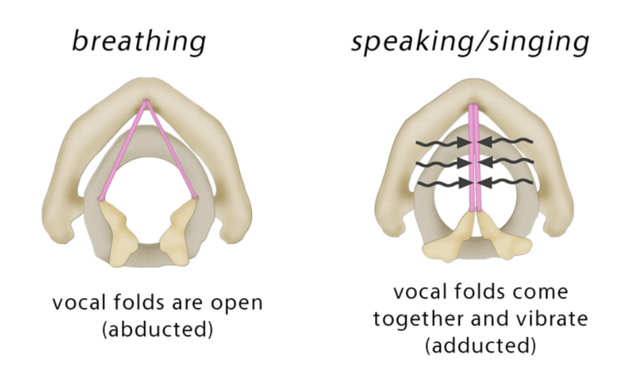 Sound in our voices is created by energy from our lungs. This in-turn causes vibration of the vocal cords at what level?