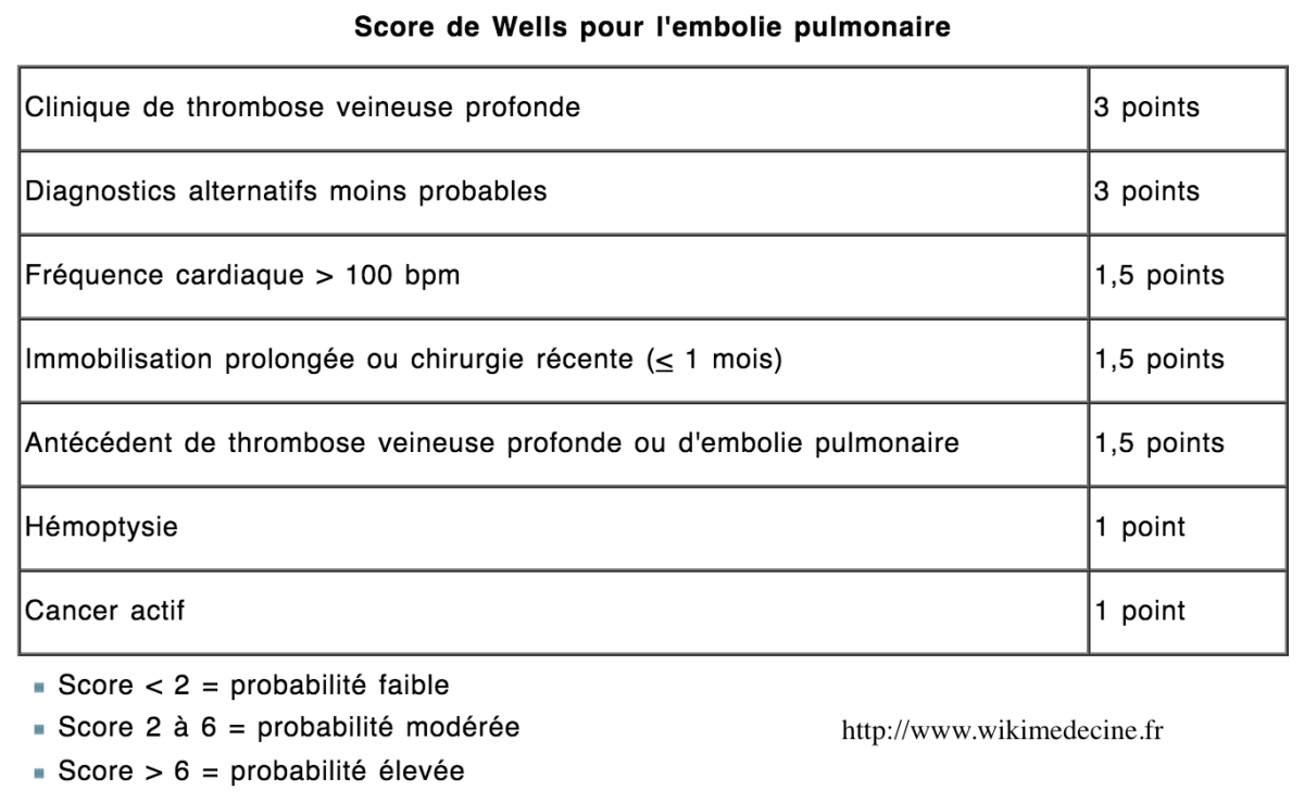 Quels sont les critères de Wells?