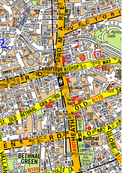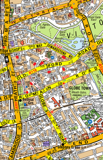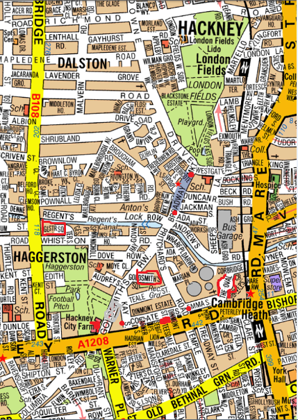 Notes: NO R From Whiston road, go R Hay st, L Dove Row, R Goldsmiths Row