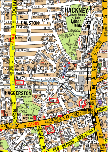 Notes: No North to Goldsmiths Row further as pedestrianised/cycles only