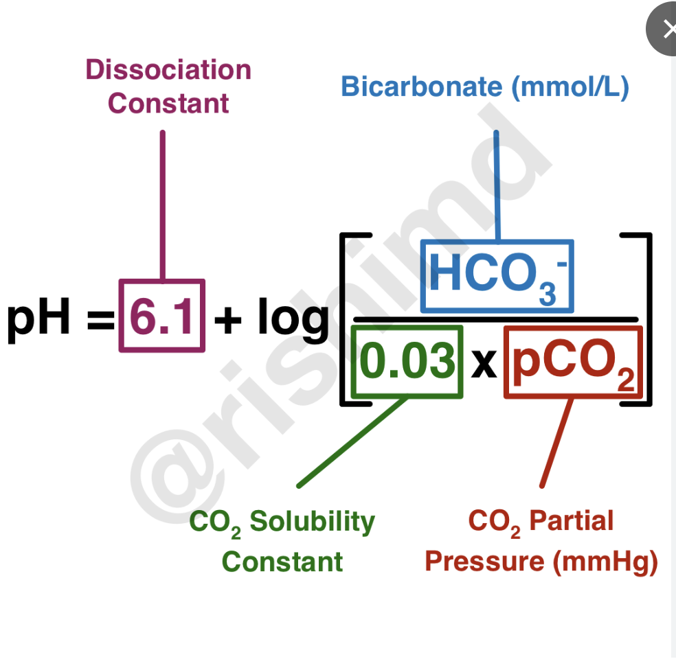 pH = 6.1 + log [ serum bicarb / (0.03 x PaCO2) ]