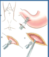 enlargement of the stomach associated with rotation on its mesenteric axis (maalposition/Twisting)