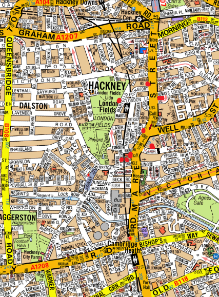 Dalston Lane on NorthWest Two Way Area: Graham Road Arrival Details: Dalston Lane on NorthWest Departure details: West FAL Graham rd or F Queensbridge rd FAR Ridley Rd, R on to ST.Marks rise EAST FAL Cecilia rd FAR Greenwood rd