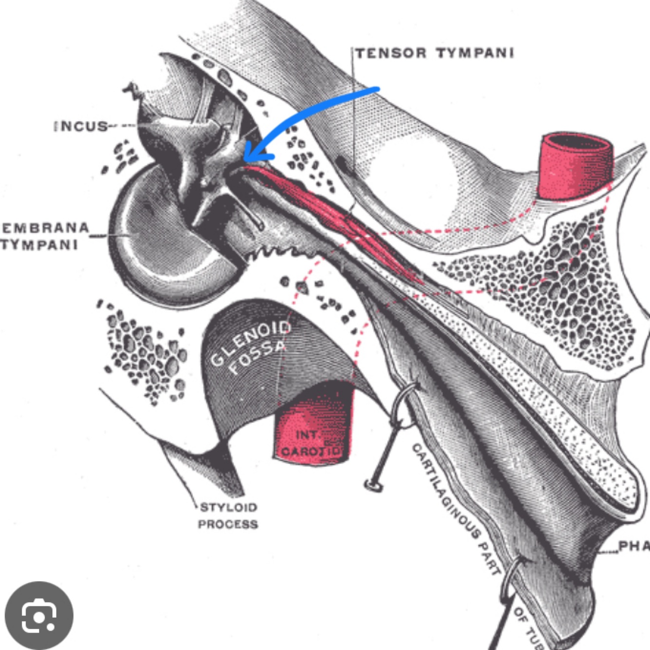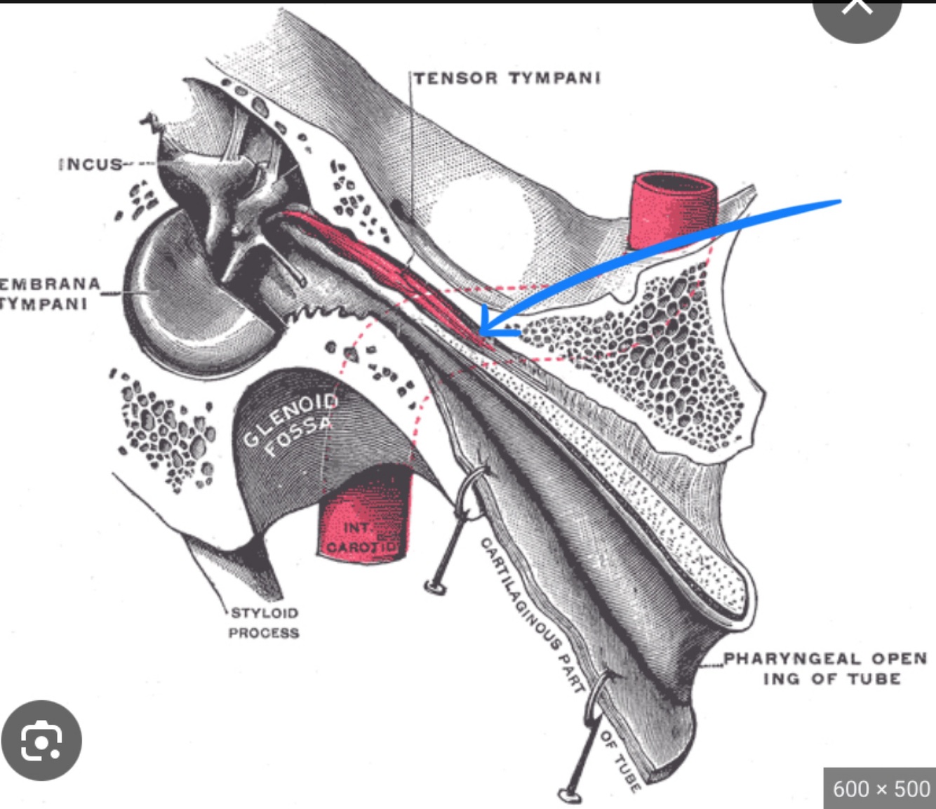 She tensor tympani contracts (swallow, yawn etc) lumen opens