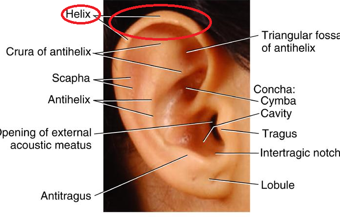 Outer rim of the visible external ear