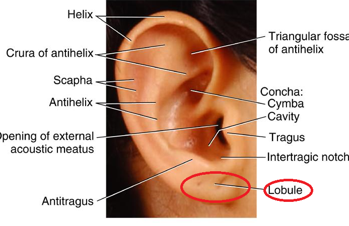 Inferior fleshy portion of the visible external ear. Consists of fibrofatty tissue