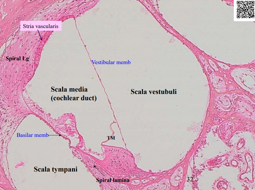contains the spiral organ of Corti which lies on the basilar membrane