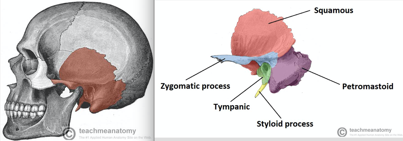 in relation to temporal bone parts, the external acoustic meatus consists mostly of the___________