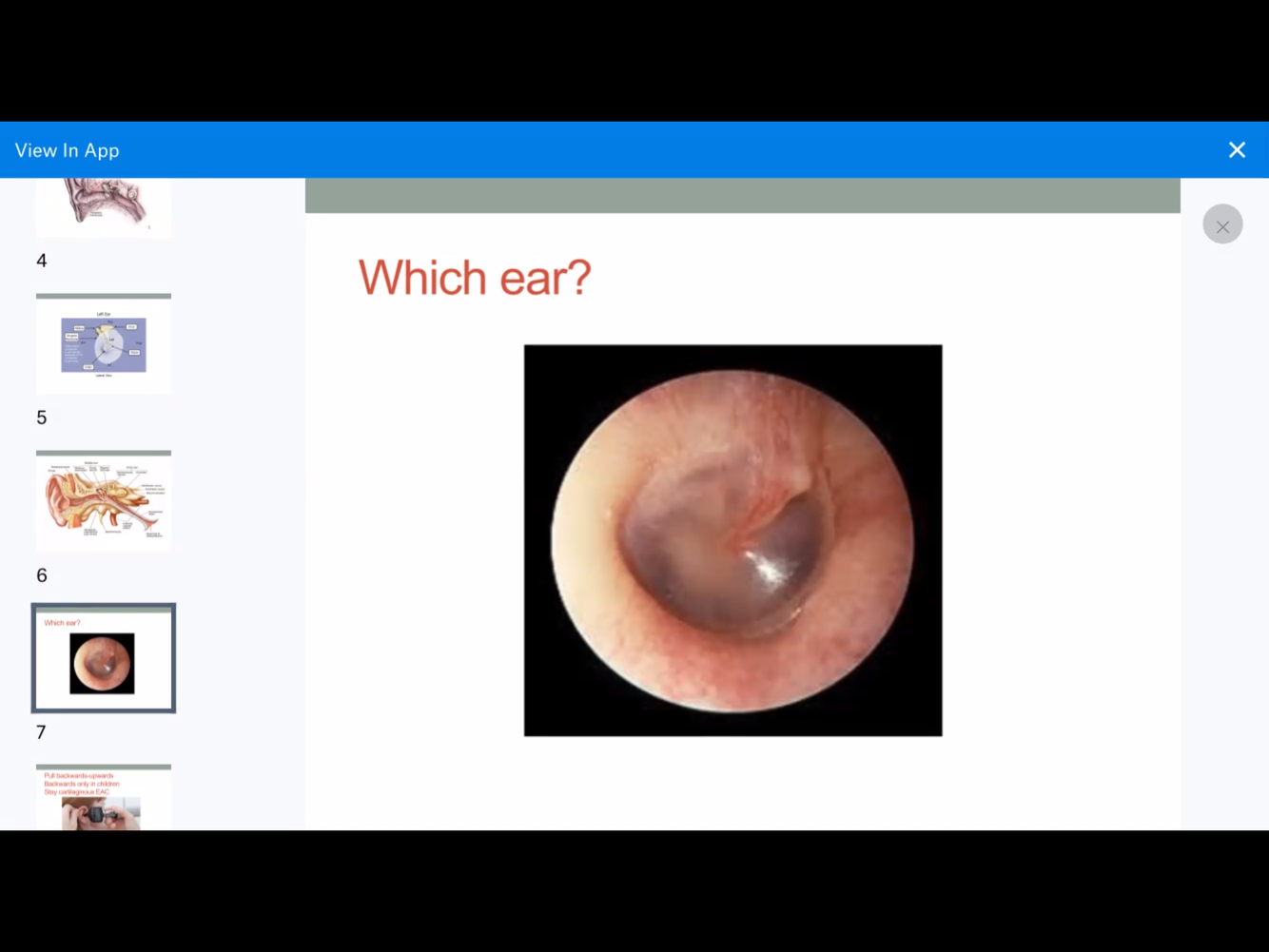 bc the ear canal is Sigmoid shape>> need to pull ear up and back to
