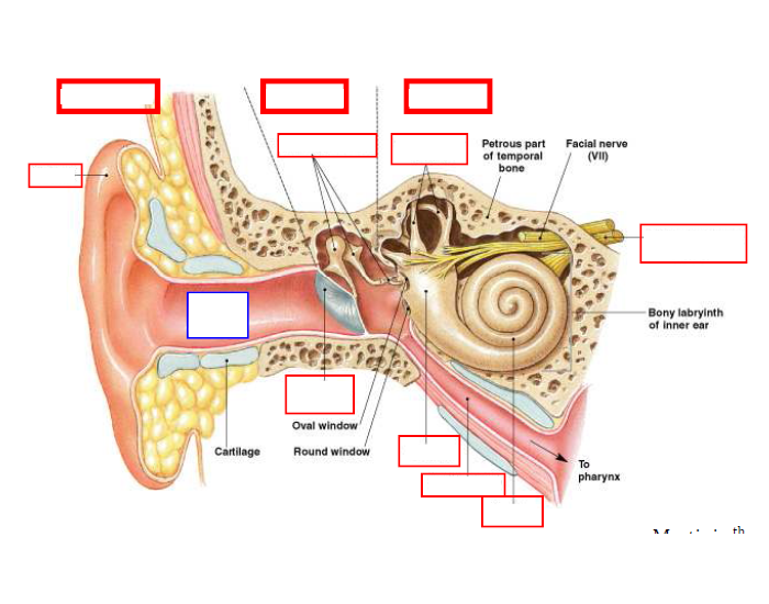 The middle ear, or the tympanic cavity, contains the ossicles that transmit vibrations from the tympanic membrane to components of the inner ear.