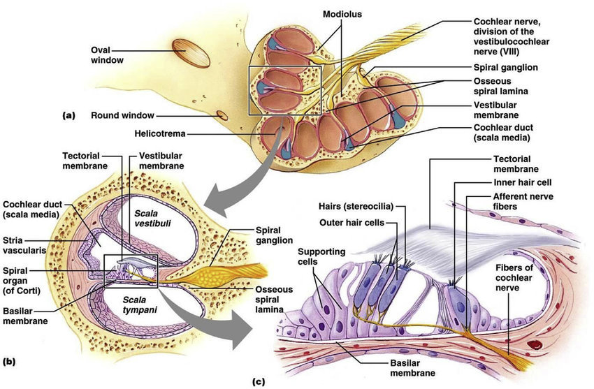 osseus spiral canal spirals about 2,5 turn around osseus spiral lamina