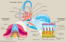 semicirculaer canal system detects and responds to angular acceleration and deceleration of the head.