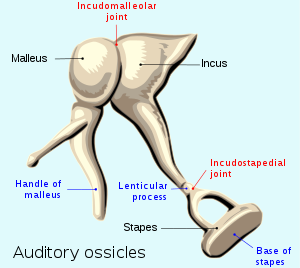 It contains the handle of the malleus
