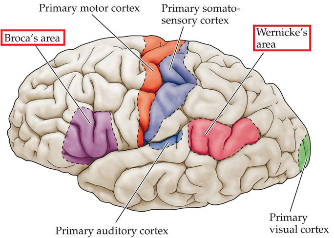 Audiovisual areas (22, 39 and 40) are connected with the Broca’s speech area